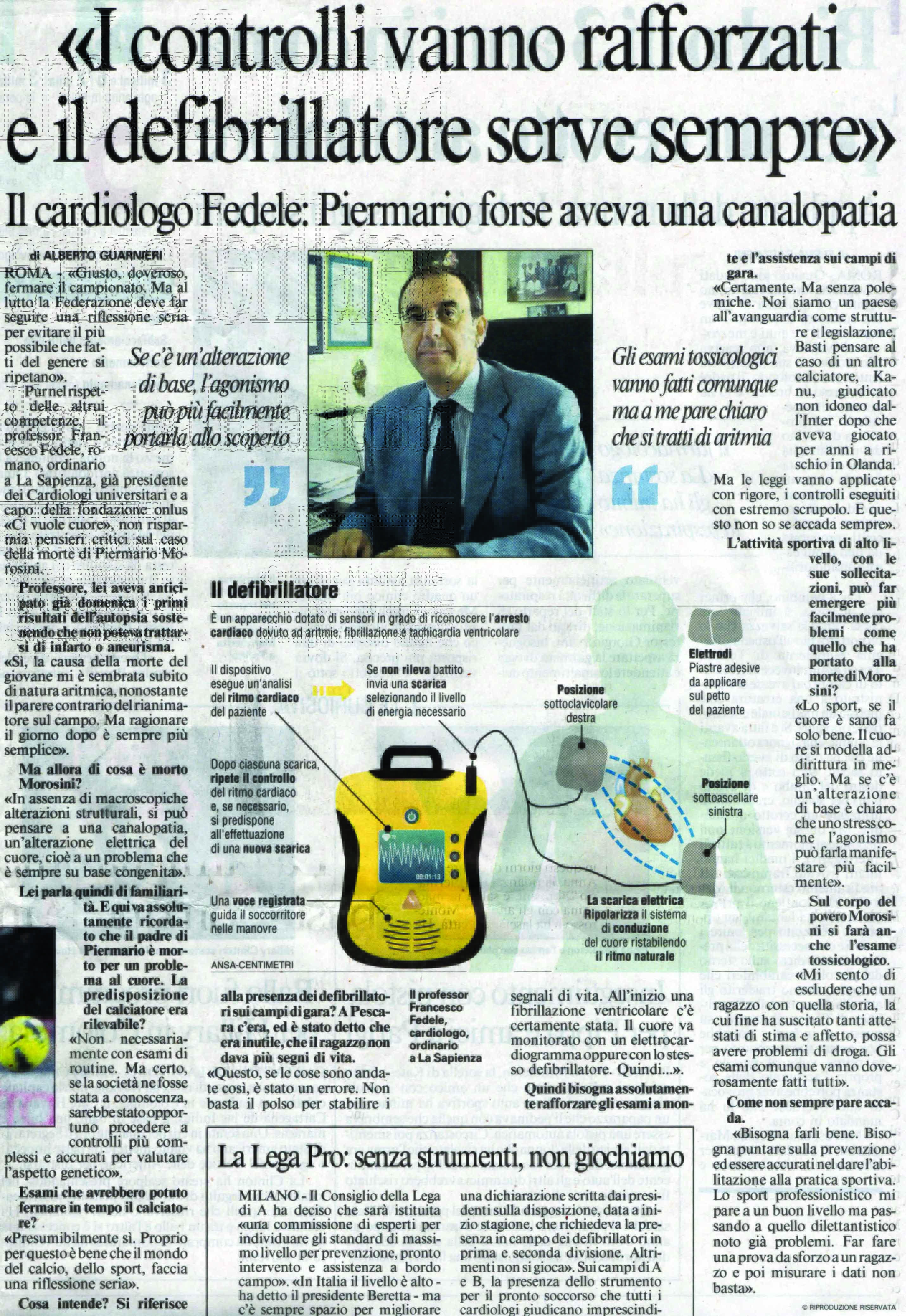 “I CONTROLLI VANNO RAFFORZATI E IL DEFIBRILLATORE SERVE SEMPRE”